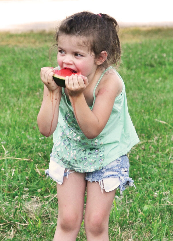 - Jentre Swiger, 5, won the watermelon eating contest in her age category, ages 2-5. (Photo by Clara Noelle)